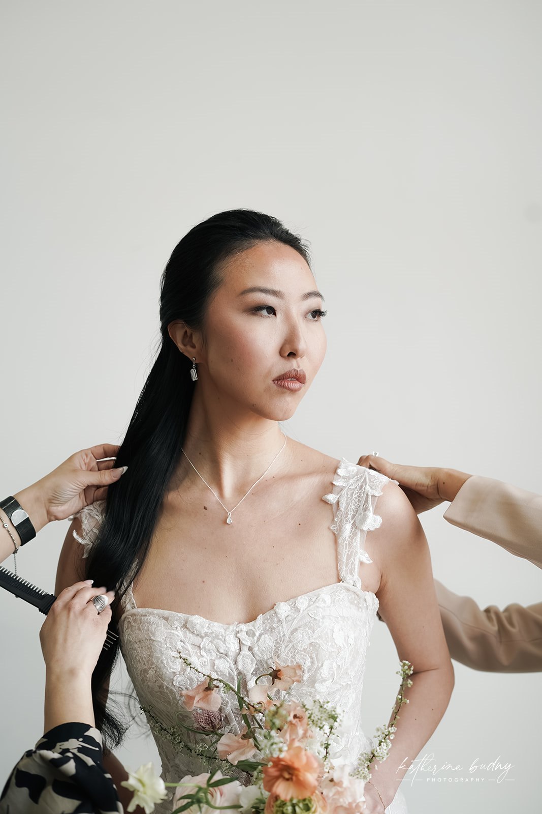 For this elegant and timeless look, I chose a sophisticated half-up half-down hairstyle paired with a sultry smokey eye. The romantic half-up style beautifully framed the face while the dramatic smokey eye added the perfect touch of glamour and sophistication.